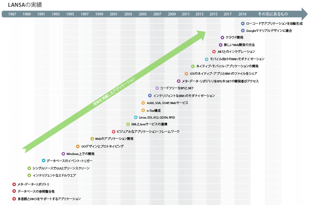 シンプルで高度なソフトウエアLANSAの使命は、高度なソフトウェアの扱いを簡単にすることです。私たちは、根本的かつ絶えず変化するテクノロジの面倒な部分を吸収して、ITプロフェッショナルが、本来解決すべきビジネス上の問題に集中して、高品質のソフトウェアを迅速に提供できるようにしてきました。効果的にITを活用して、企業の革新と差別化を図ることができれば、その企業は競争優位に立つことができます。LANSAはその実現をお手伝いします。