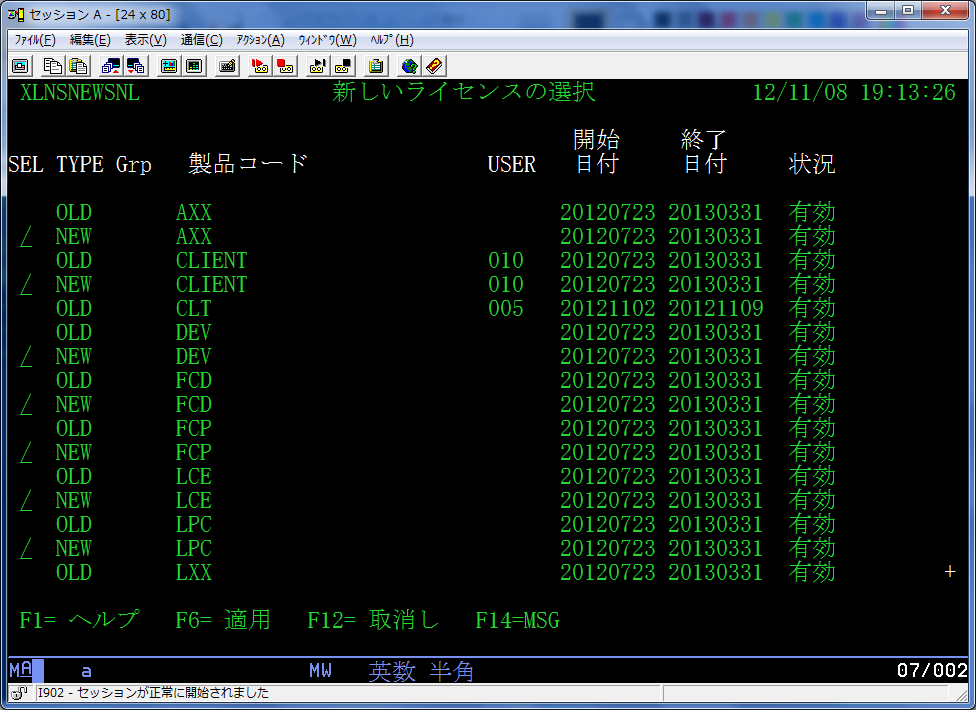 (4) 新しいライセンスの適用を求められた場合は、F6= 適用を押下してください。