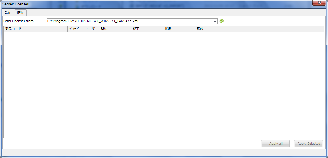 (5) 「Load Licenses from」の入力ボックスに、ライセンス・コードのXMLファイルへのパスを入力して、「Apply All」ボタンをクリックしてください。
