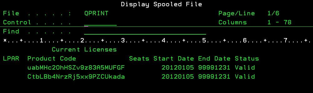 (3) WRKSPLFコマンドでライセンス適用ジョブのスプールをご確認ください。