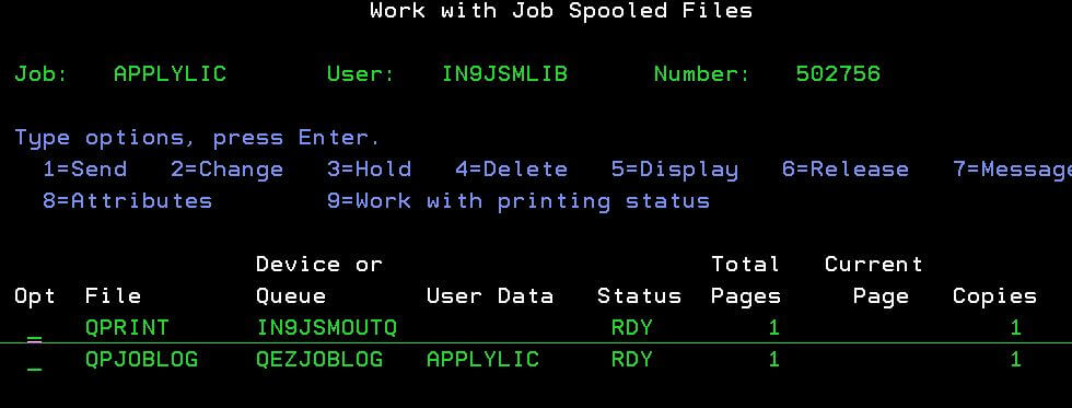 WRKSPLFコマンドでライセンス適用ジョブのスプールをご確認ください。